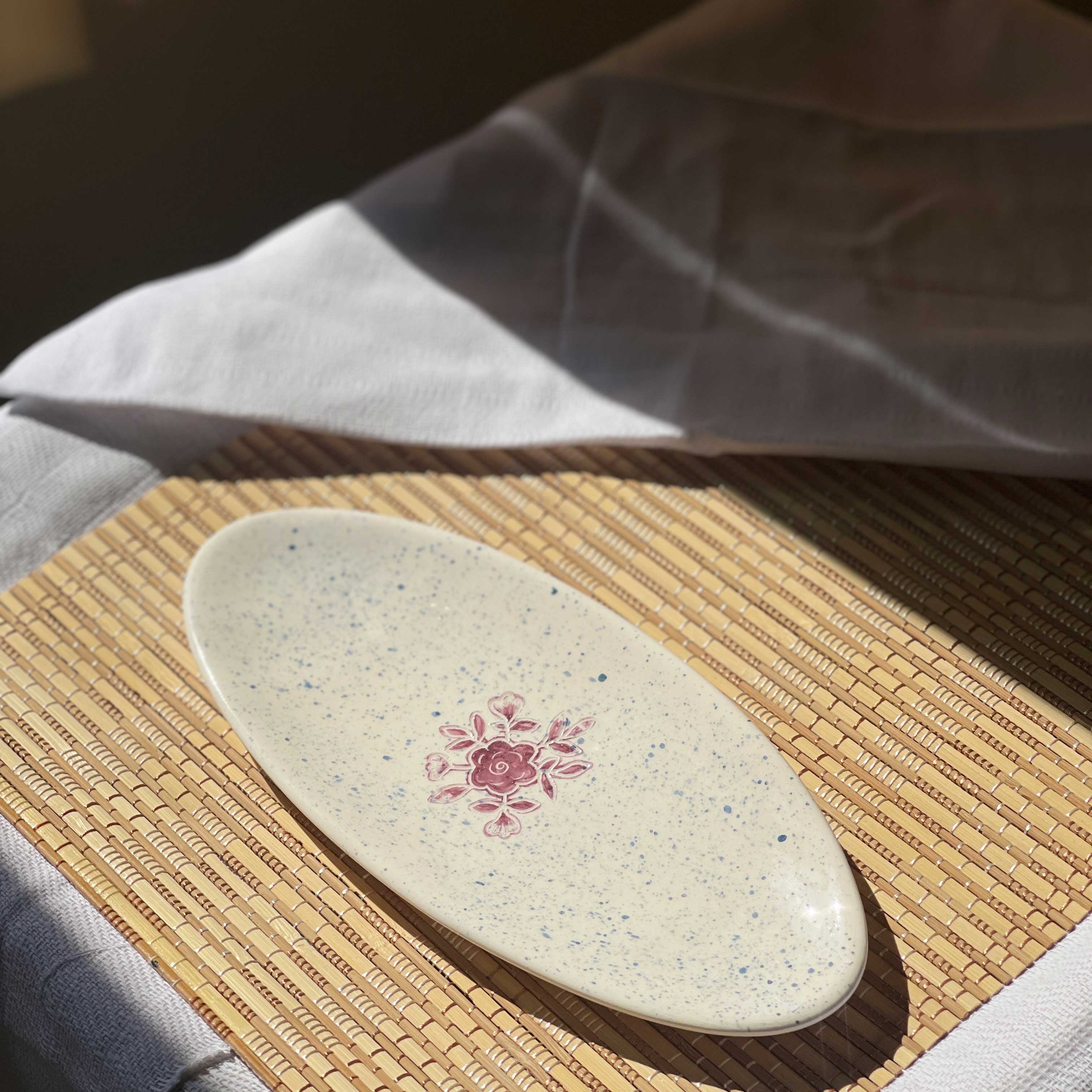 ظرف دسر سرامیکی بیضی طرح گل 6 پر