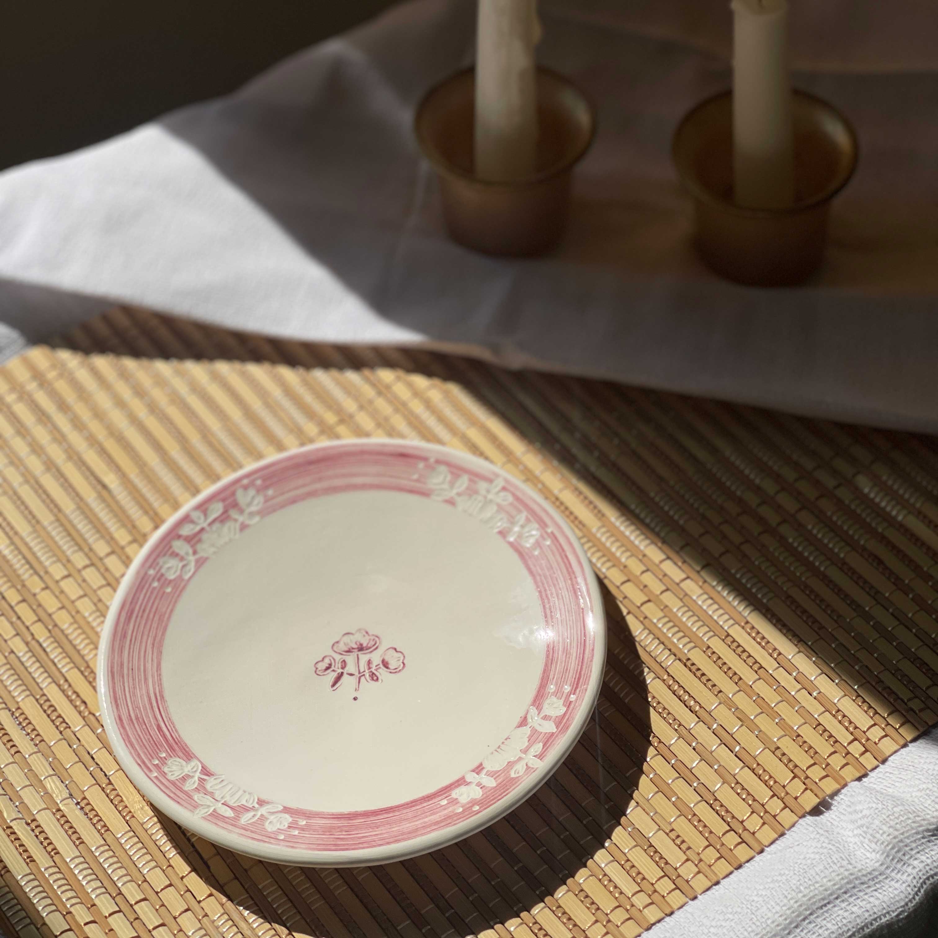 بشقاب سرامیکی 1۵ سانتی دستساز طرح گل صورتی