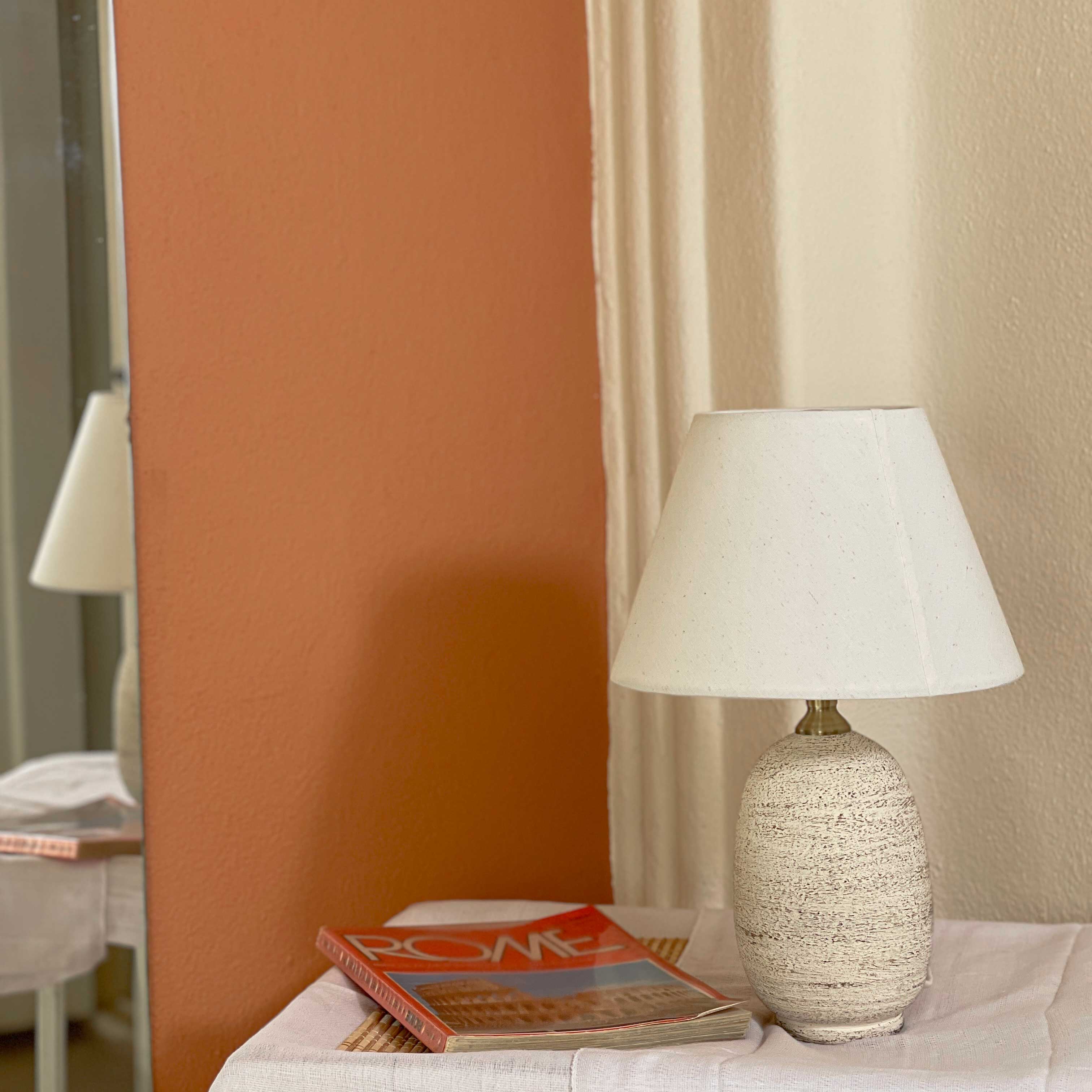 آباژور رومیزی سفالی کرم با بافت طوسی و کلاهک کرم